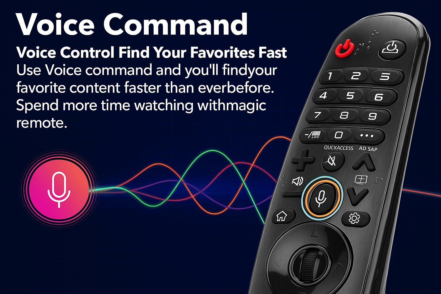 The LuminaSpire Magic Remote offers advanced control through motion sensing, scroll navigation, and built-in voice recognition. It replaces conventional buttons with intuitive point, click, and voice functionality, providing seamless access to all smart features of your LuminaSpire TV.