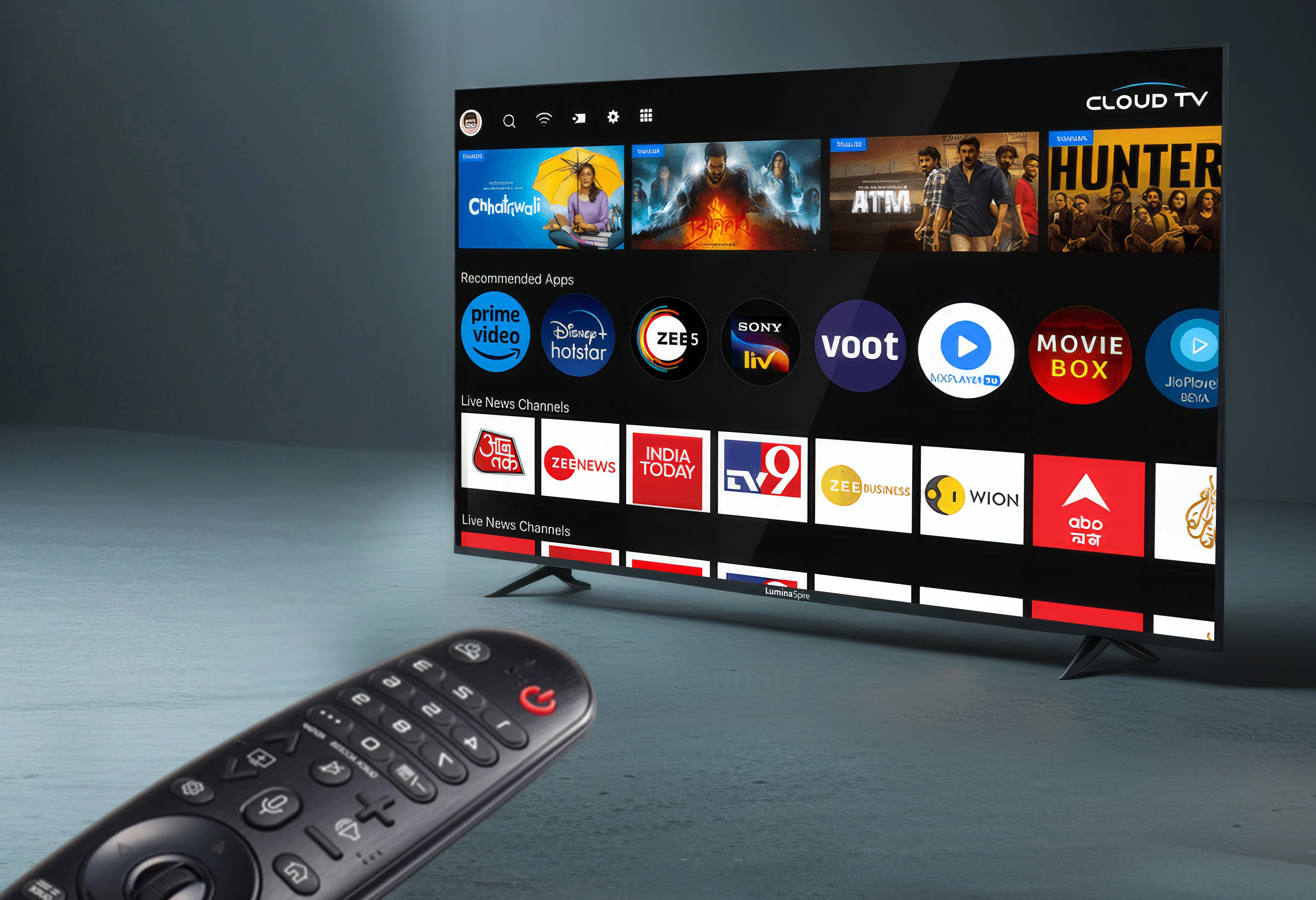 Cloud TV runs on a certified OS optimized for efficient resource management and smooth execution of OTT and utility apps. Its companion app, available on Google Play, turns your smartphone into a smart remote with integrated Google Voice Search for intuitive, voice-enabled control.
